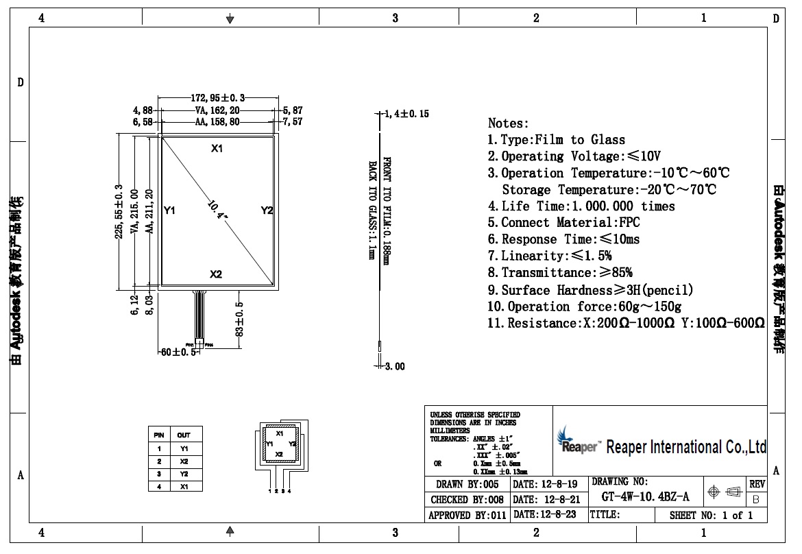 | Touch action force | 20~100g |