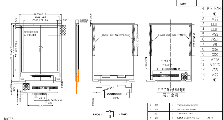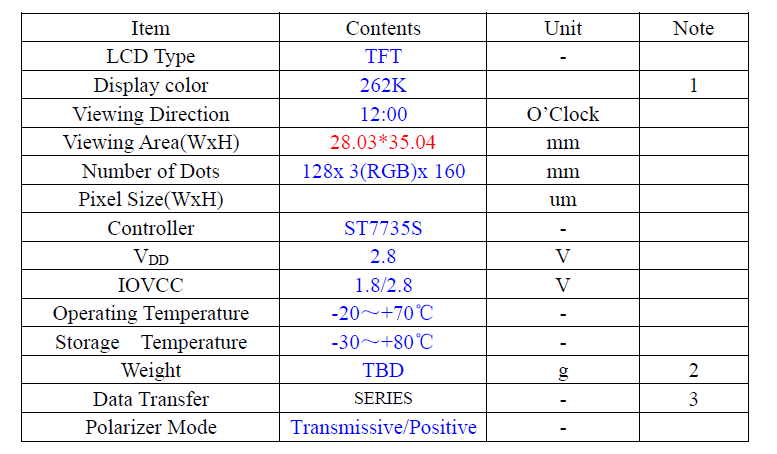1.77"TFT LCD Display 128*160 Serial SPI with ST7735S controller