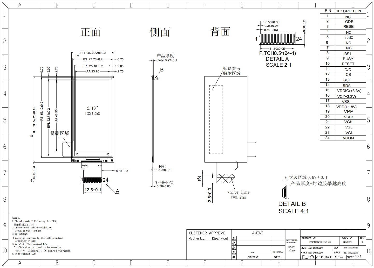 2.13 Inch Eink Epaper Display Screen EPD Spi Interface Display for Electronic Shelf Label Electronic Price Tags