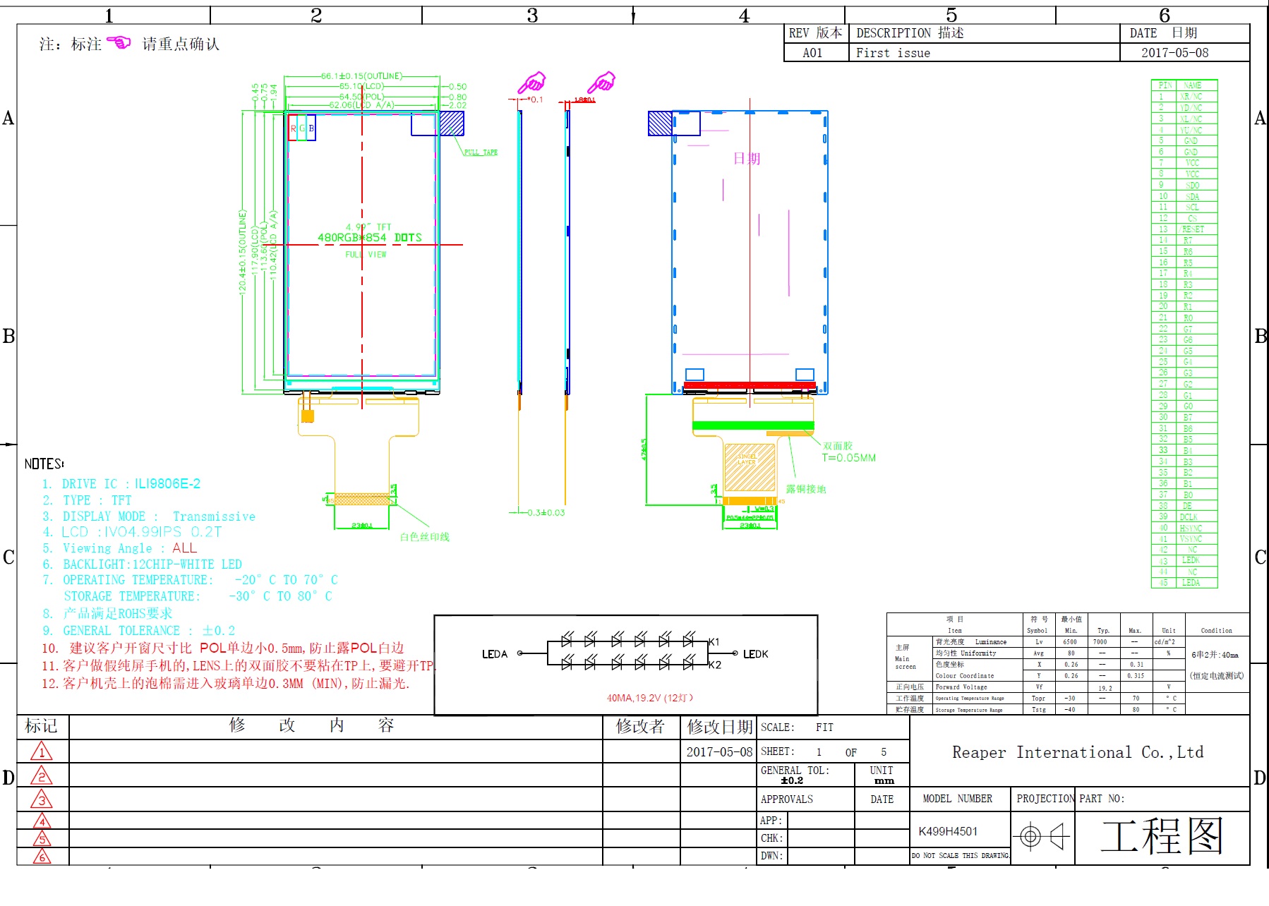 Reaper standard TFT-LCD display modules are available in various sizes from 1.77" to 10.4' TFT LCD, such as 2.4" TFT display, 2.8", 3.5" TFT display, 4.3" TFT display, 5 inch display, 7" LCD display. These TFT LCD modules are including options of TFT panel, TFT LCM with controller board, industry standard mono TFT LCM, TFT color display, and wide operating temperatures of -20°C to +70°C or -30°C to +80°C.
