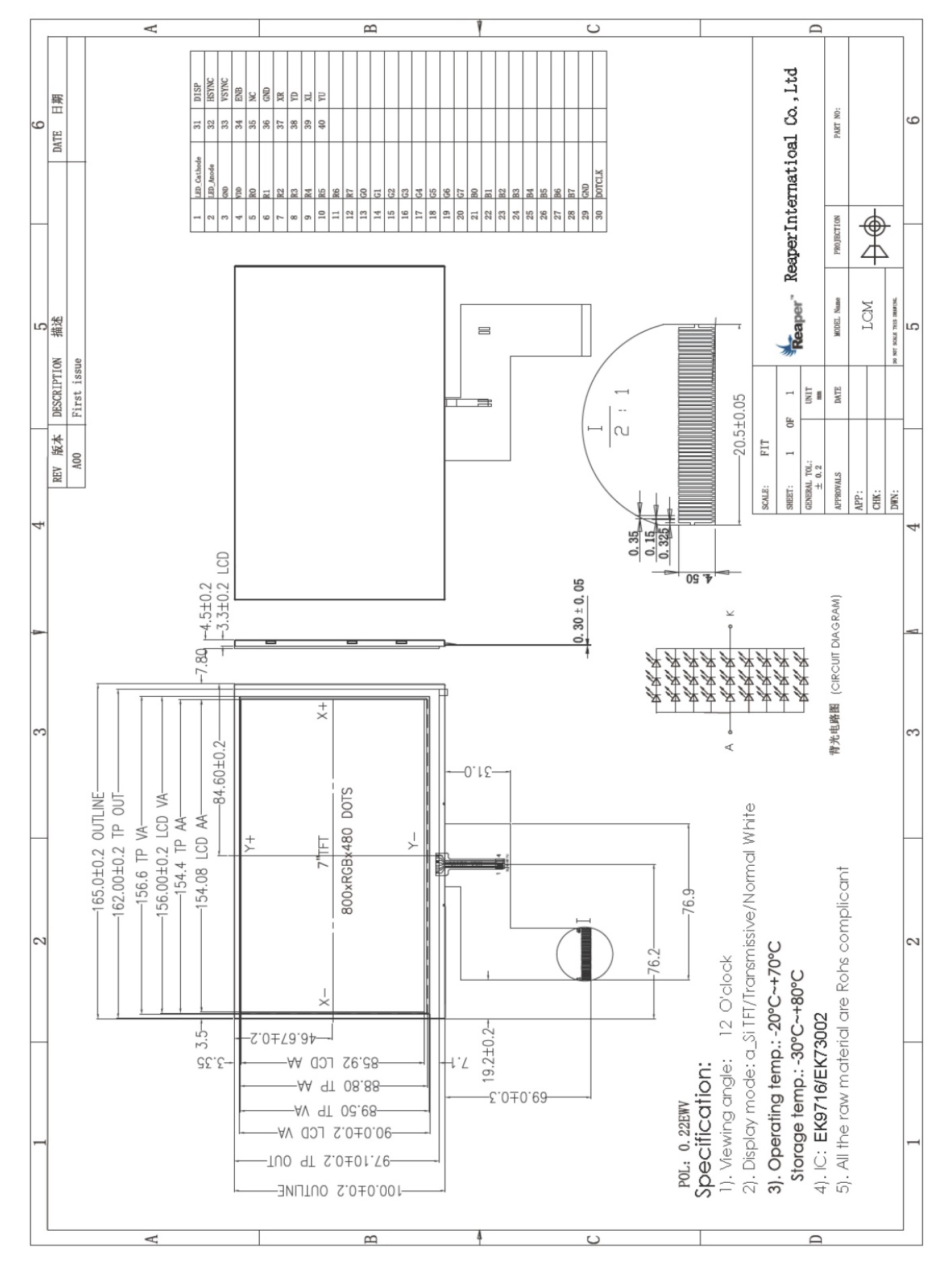 Reaper standard TFT-LCD display modules are available in various sizes from 1.77" to 10.4' TFT LCD, such as 2.4" TFT display, 2.8", 3.5" TFT display, 4.3" TFT display, 5 inch display, 7" LCD display. These TFT LCD modules are including options of TFT panel, TFT LCM with controller board, industry standard mono TFT LCM, TFT color display, and wide operating temperatures of -20°C to +70°C or -30°C to +80°C.