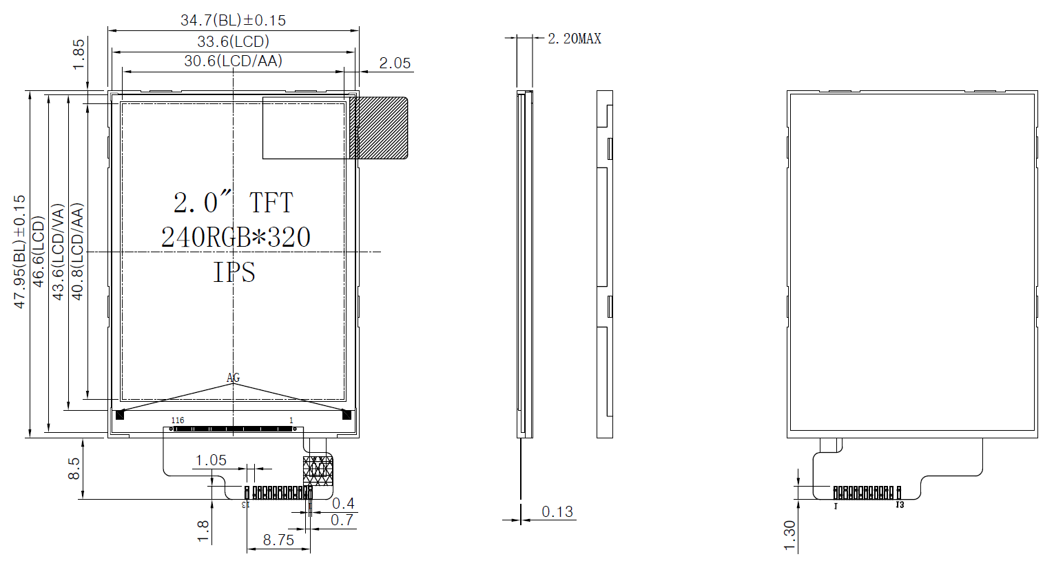 34.70(W)* 47.95(H) * 2.2(T) |