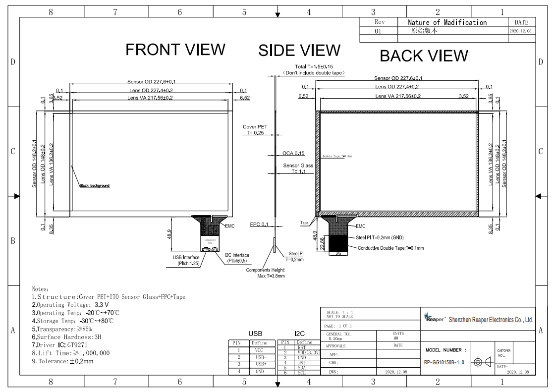 | Dimensions | 227.6*148.2(±0.1) |